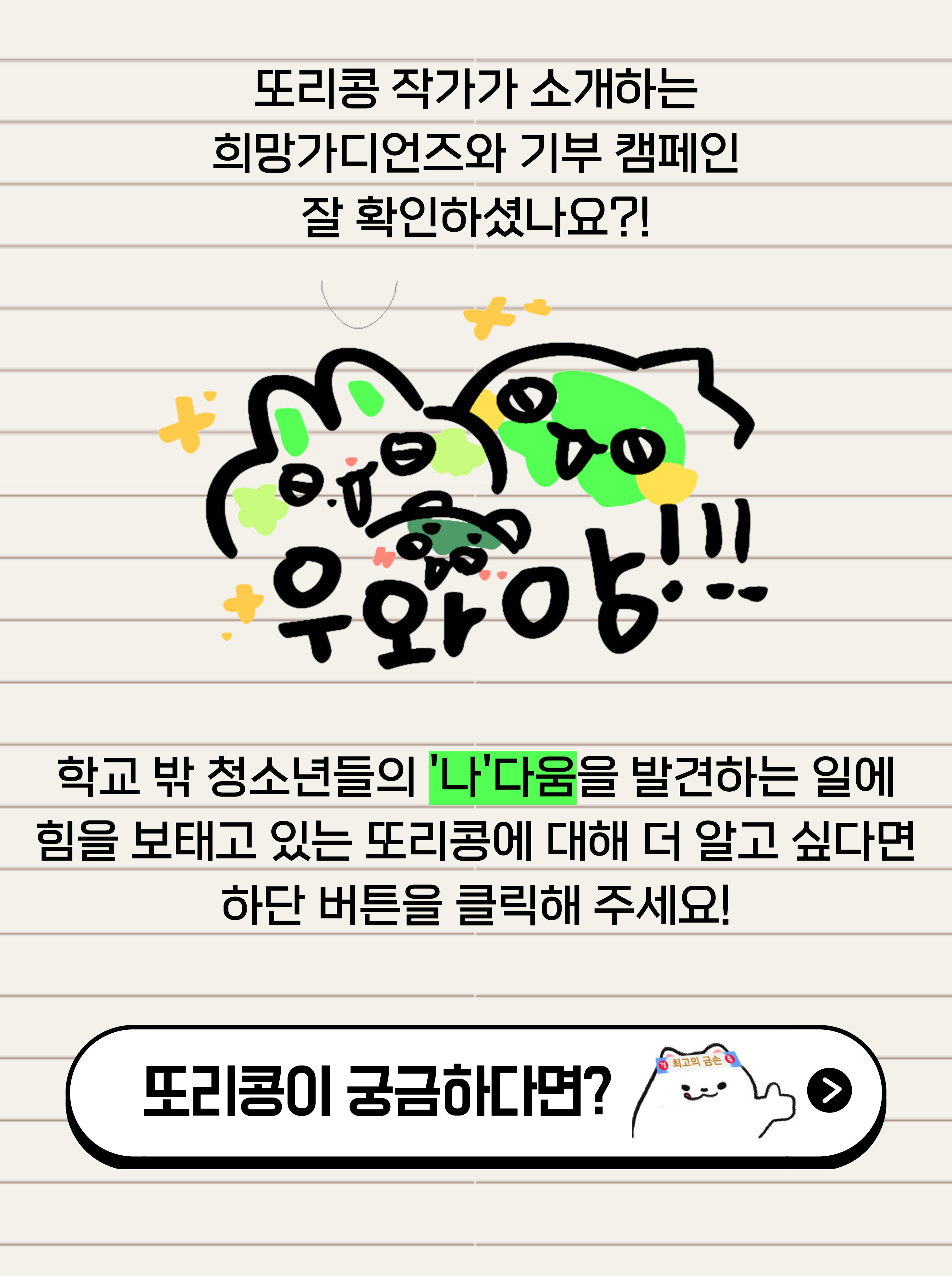 또리콩과 함께하는 기부! 좋은 일에 참가할 수 있어 마음이 따뜻해집니다. 무더운 날씨보다 마음이 더 따뜻한 모두들의 응원이 잘 전해졌으면 좋겠습니다!
