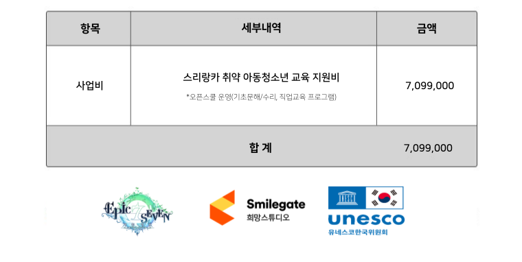 에픽세븐은 올해로 3년째 스리랑카 취약 아동청소년 교육 지원을 이어가고 있으며,