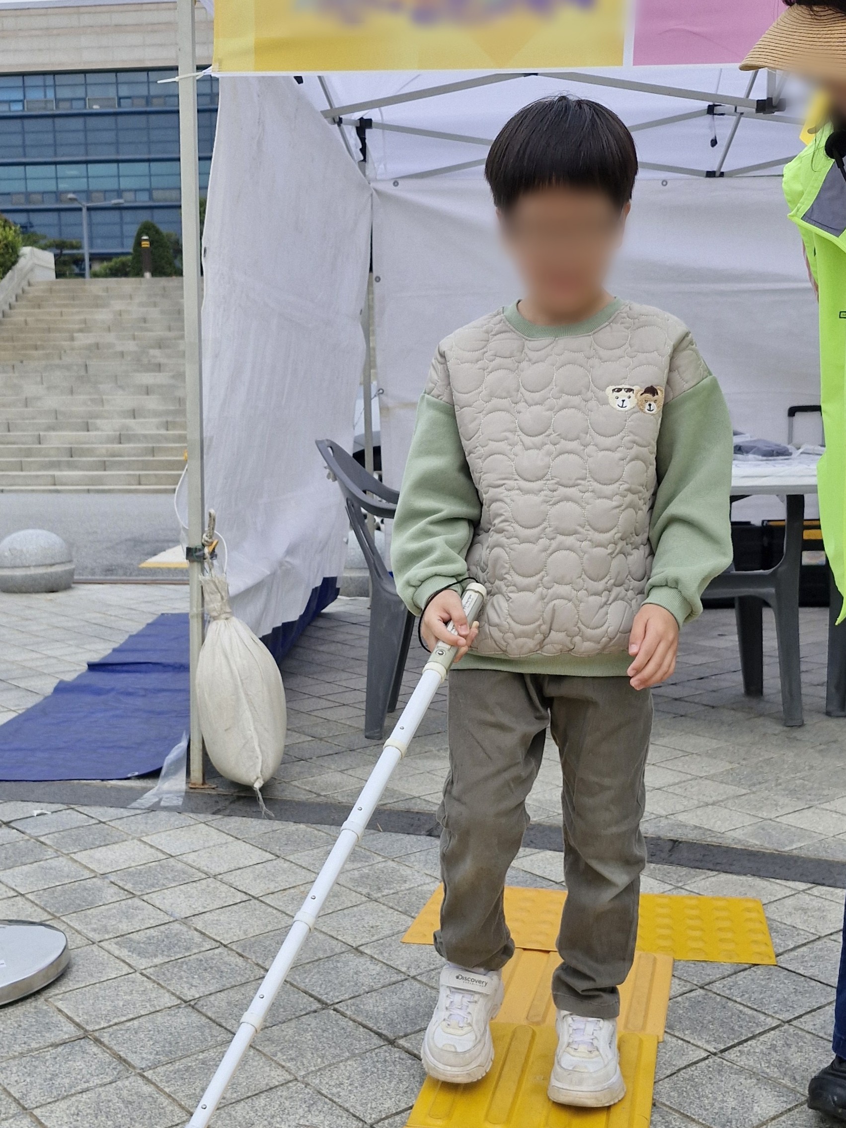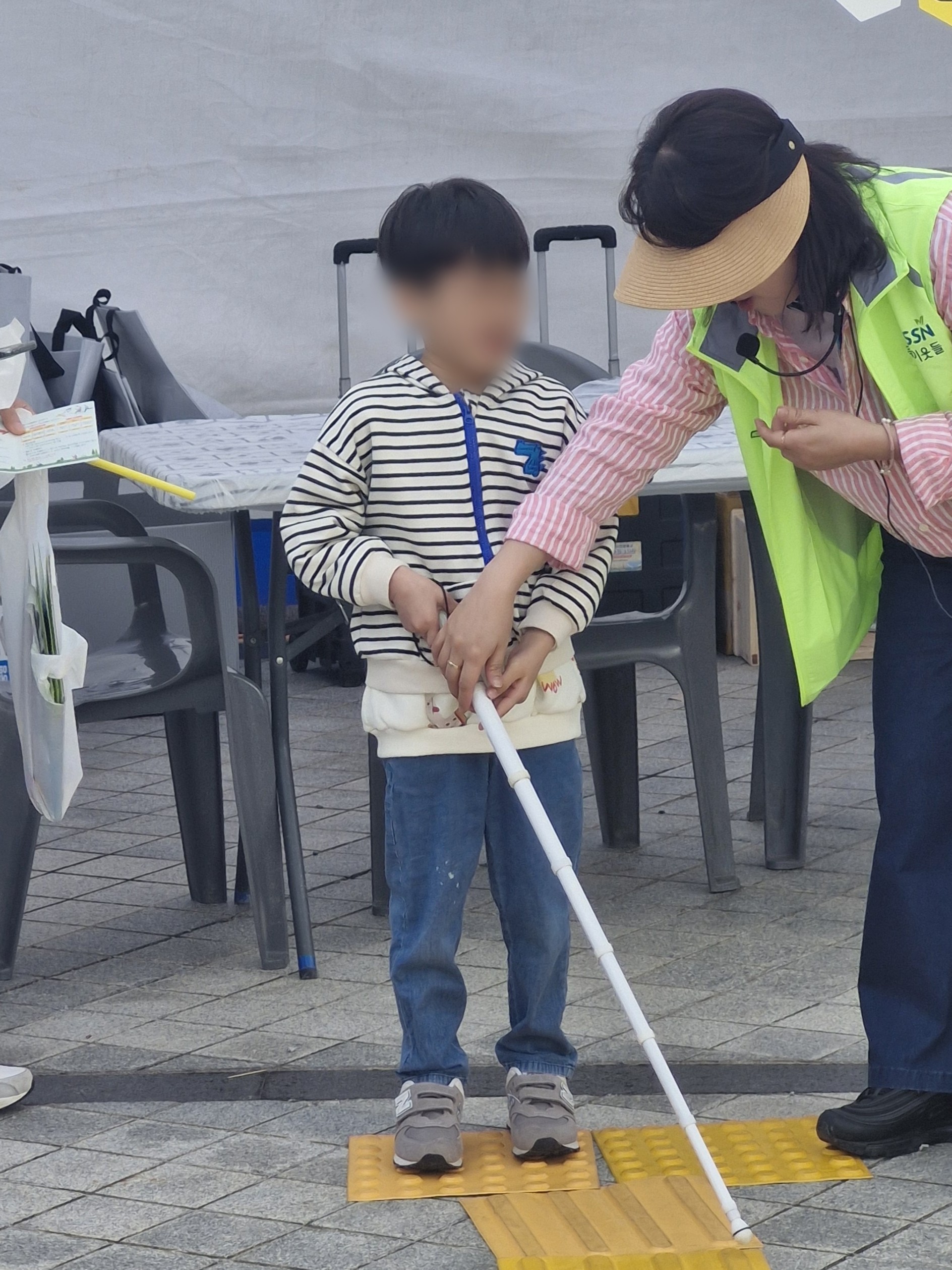 아이들은 눈을 감은 채 흰지팡이를 들고 점자 보도블럭과 방지턱을 오르며, 일상에서 접하기 어려운 상황을 직접 체험했습니다.