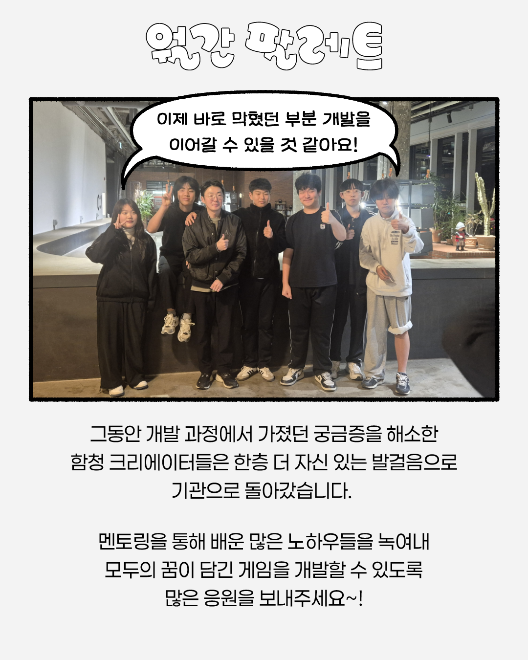 애들 너무 귀엽고 예뻐서 게임 잘 만들어서 보여줬으면 좋겠어요!