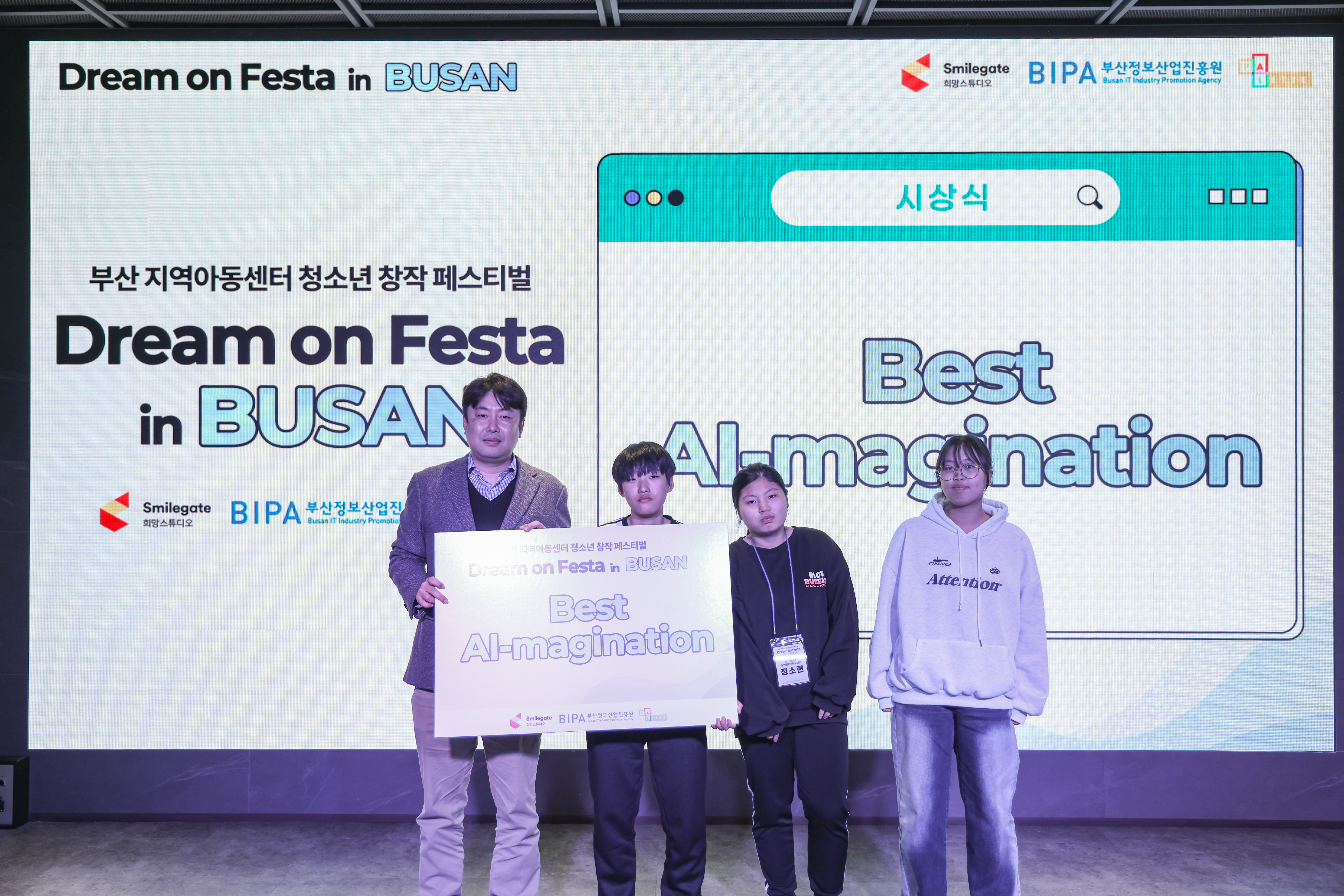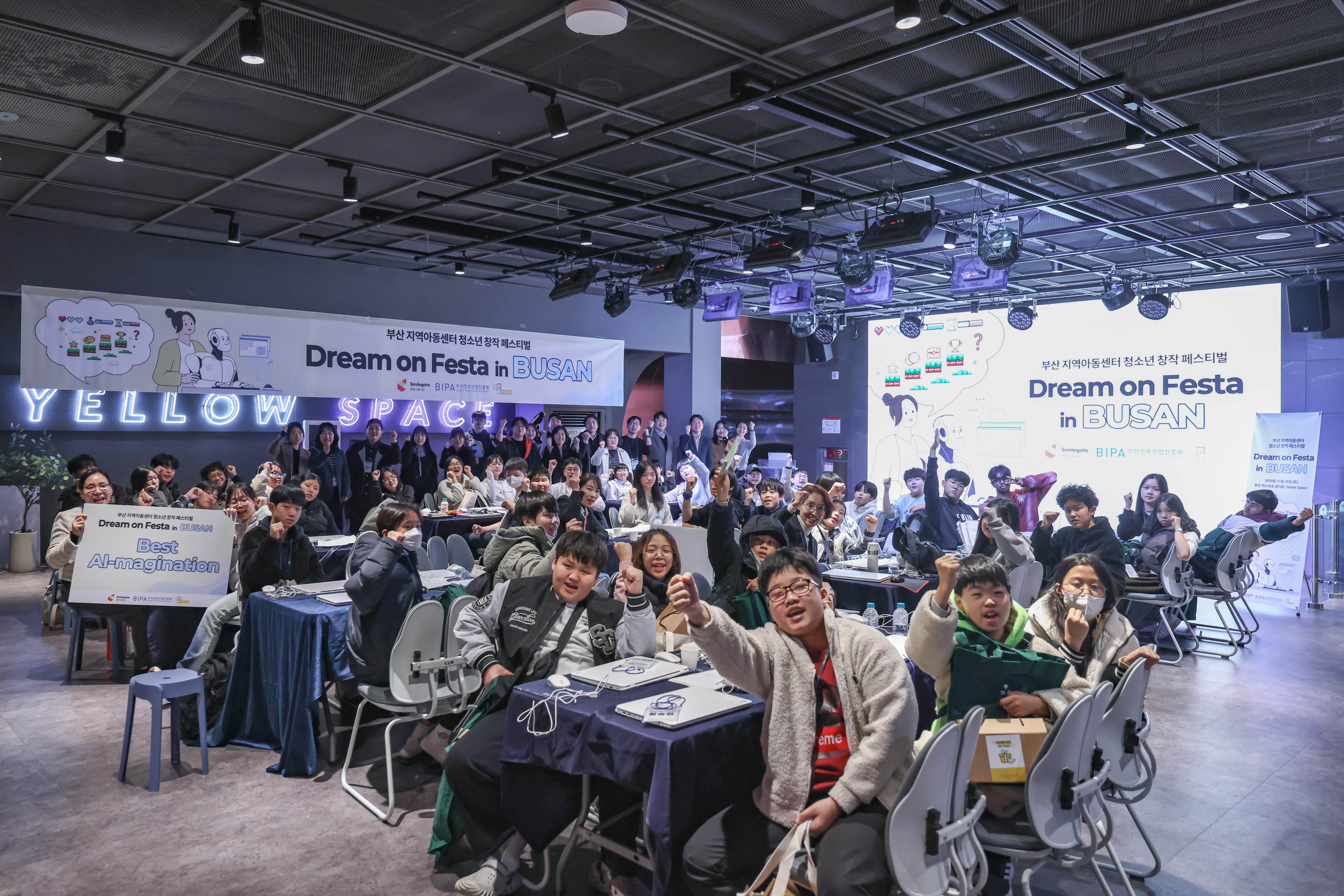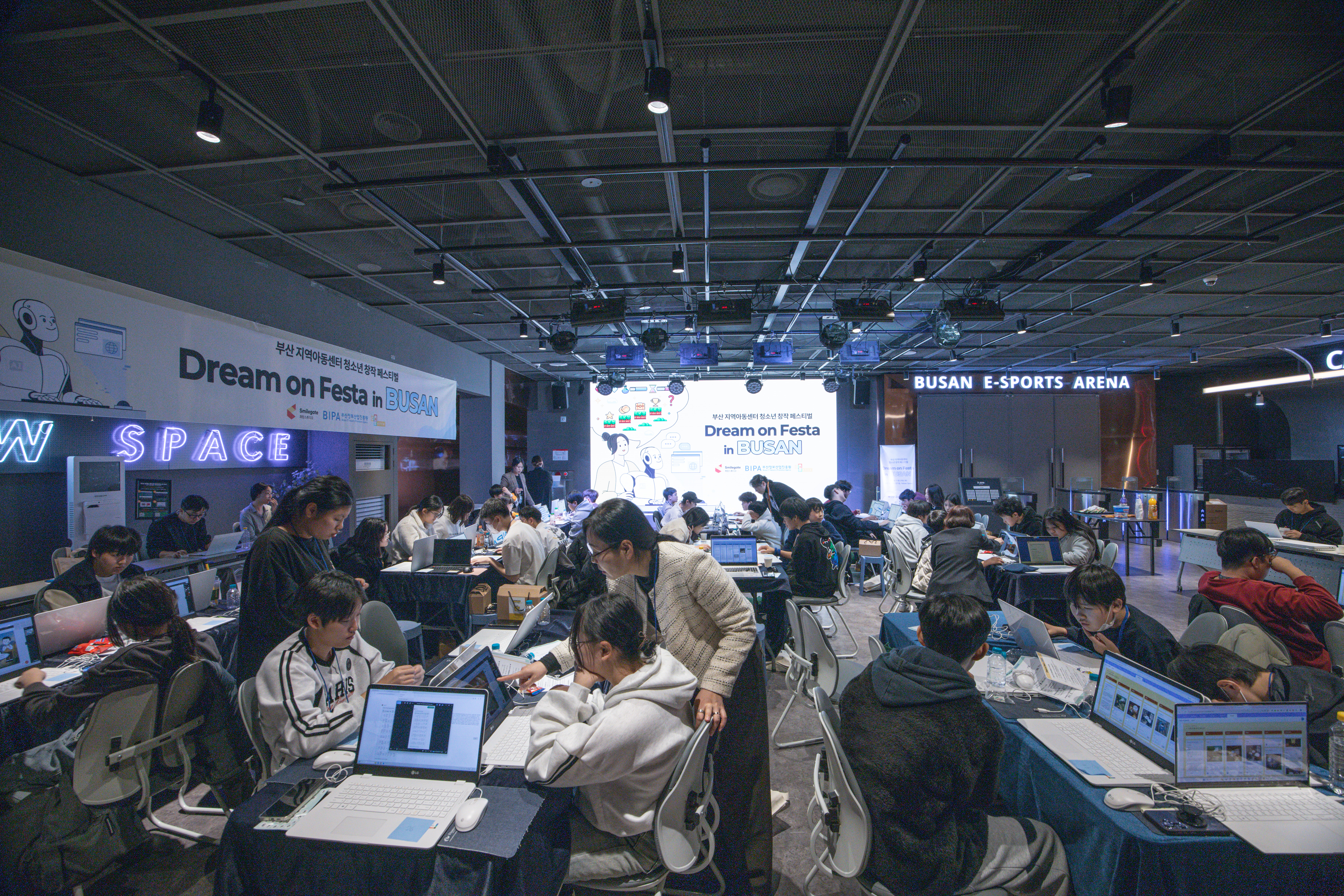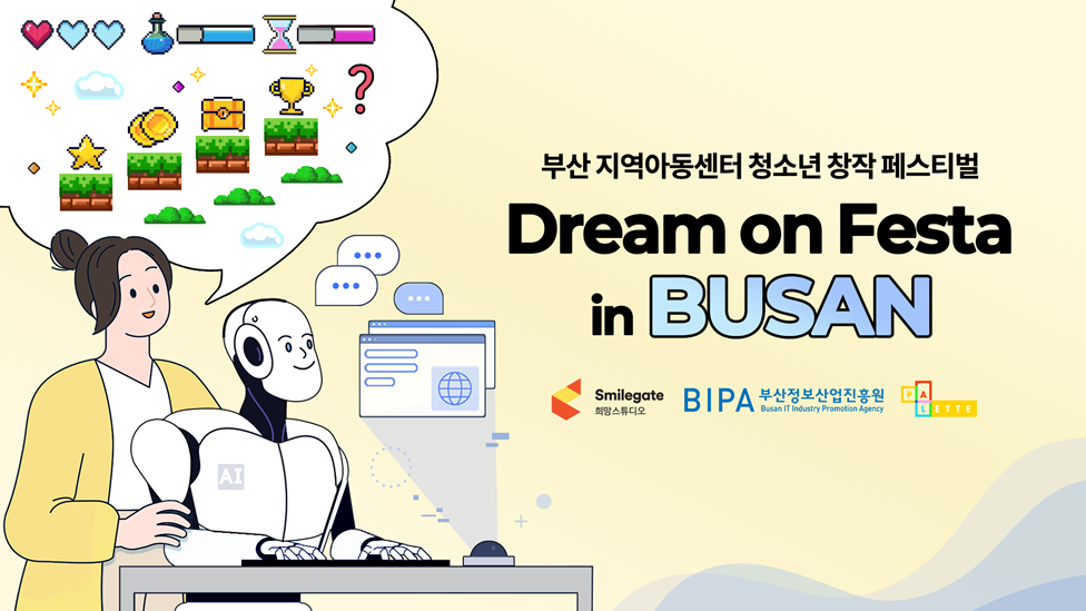 지난 11월 29일 토요일 오후, 부산 이스포츠경기장 옐로 스페이스가 청소년들의 열기로 가득 찼다. 부산 지역아동센터 8곳에서 모인 60여 명의 아동·청소년과 교사들이 특별한 창작 여정을 시작하기 위해 모인 것. 스마일게이트 희망스튜디오가 부산정보산업진흥원과 손잡고 마련한 '드림 온 페스타 인 부산', 그 현장 속으로 들어가 보자.