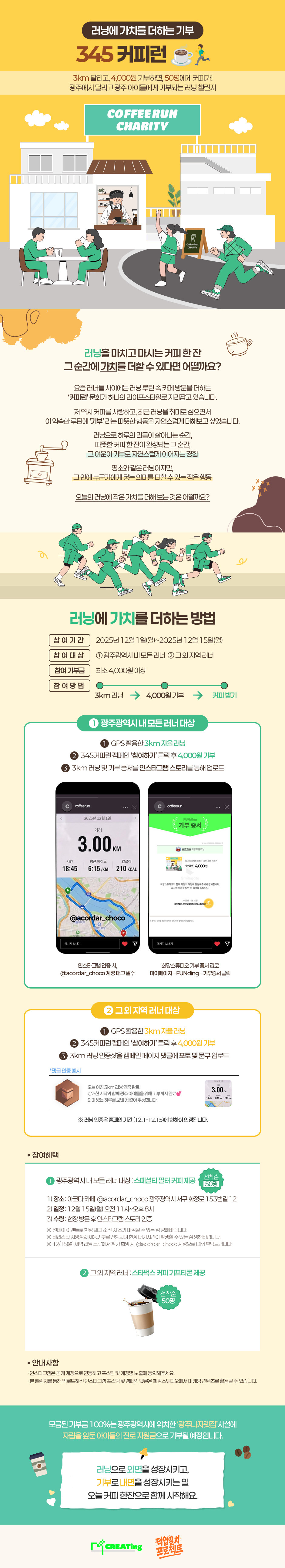 3km 달리고 4000원 기부하면 50명에게 커피가! 광주에서 달리고 광주 아이들에게 기부되는 러닝 챌린지