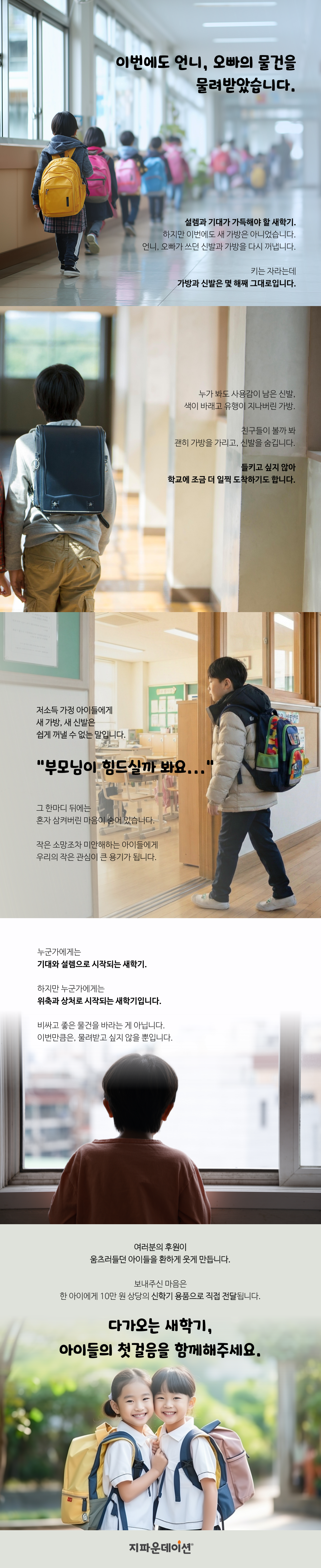 저소득 가정 아이들에게 새학기 용품을 선물 해주세요