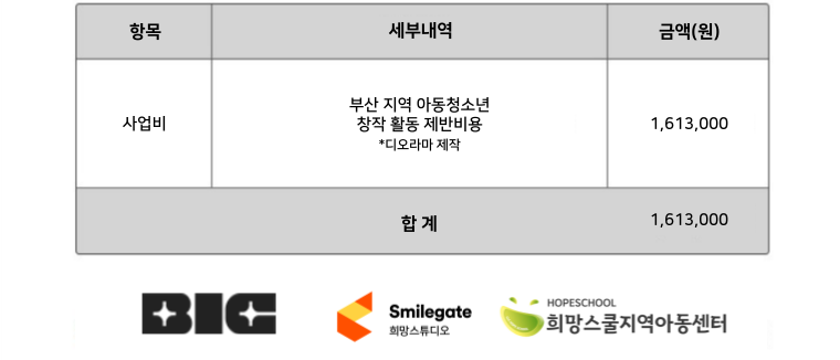 지역사회 아동청소년 창작 활동에 전액 지원되었습니다.