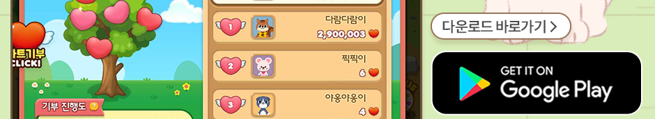 일정 재화를 기부하여 사랑의 모금함이 100% 달성되면
